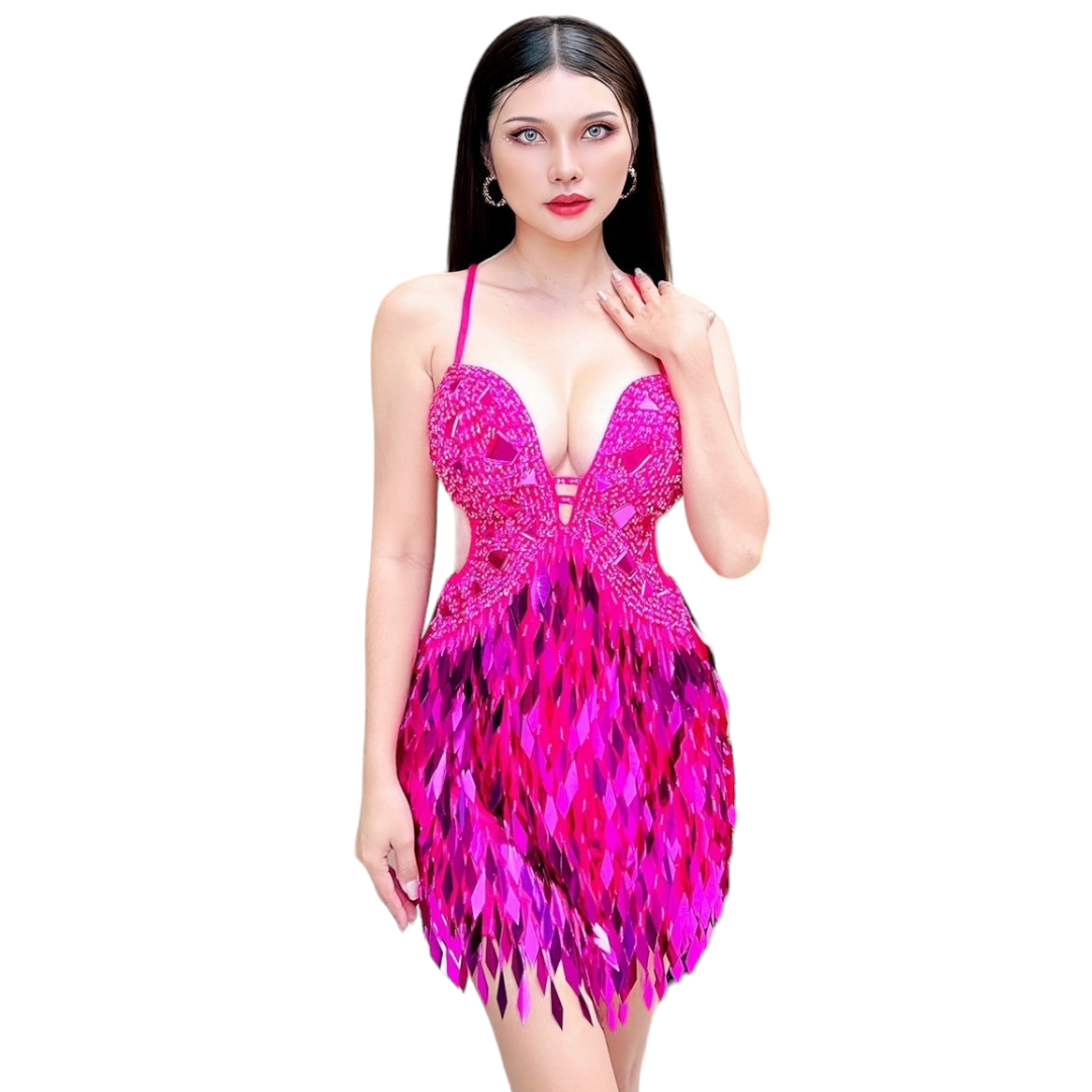 Introducing our exclusive collection of one-of-a-kind dresses – a fusion of handcrafted brilliance and individuality. Our Sequin Crystal Embellished Rhinestone and or Feather Dresses redefine glamour with intricate detailing.