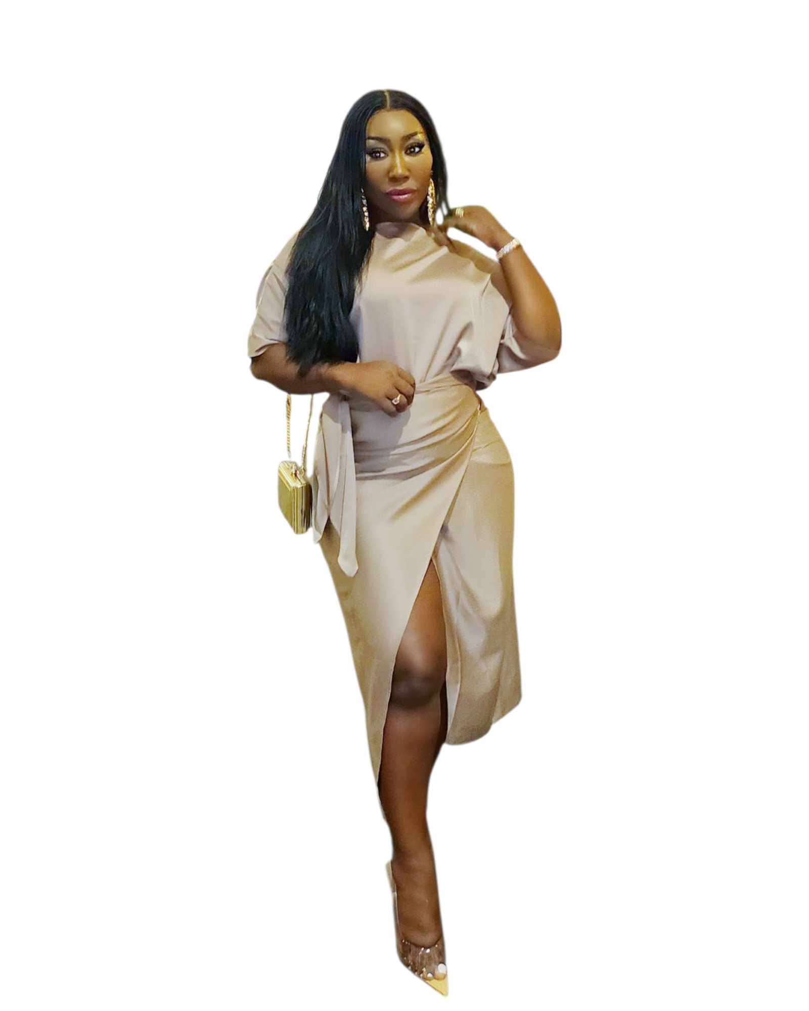 Made with high-quality satin fabric, this dress exudes class and elegance.