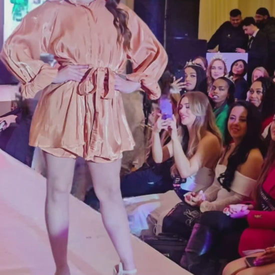The Orange Shimmer Shorts Set is a versatile and stylish outfit for the summer season.