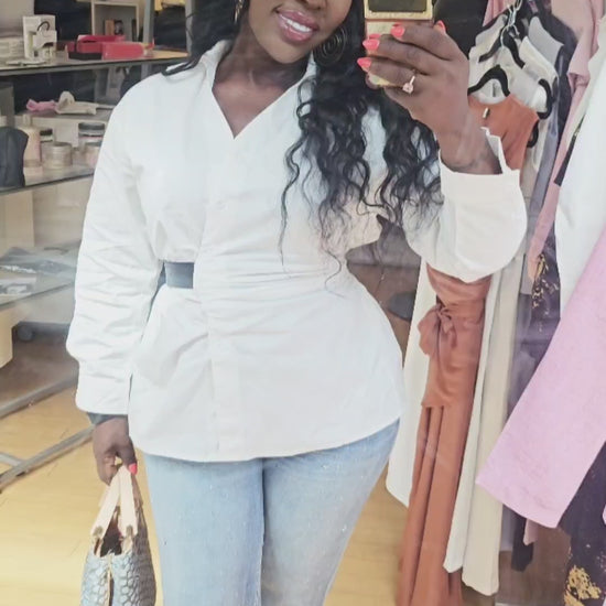 Introducing our White cotton Belted Shirt - the perfect addition to any wardrobe.