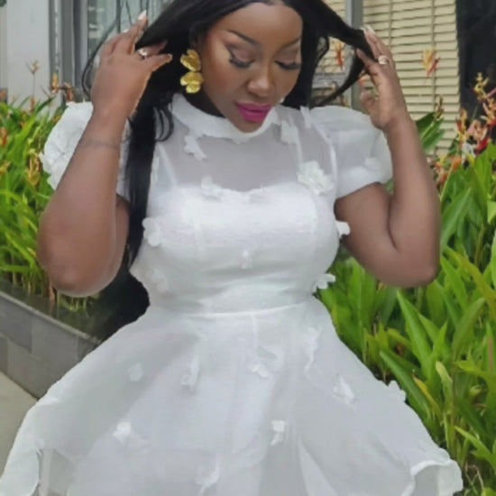 Made with chiffon fabric, featuring cute applique flowers and puff sleeves, this dress exudes cuteness and charm.
